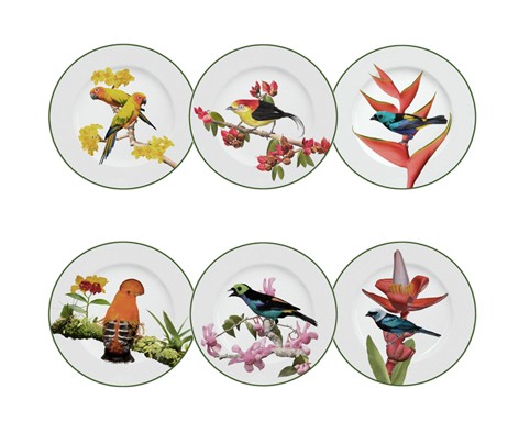 JOGO DE PRATOS PARA SOBREMESA MODELO AVES BRASILEIRAS – 6 PEÇAS